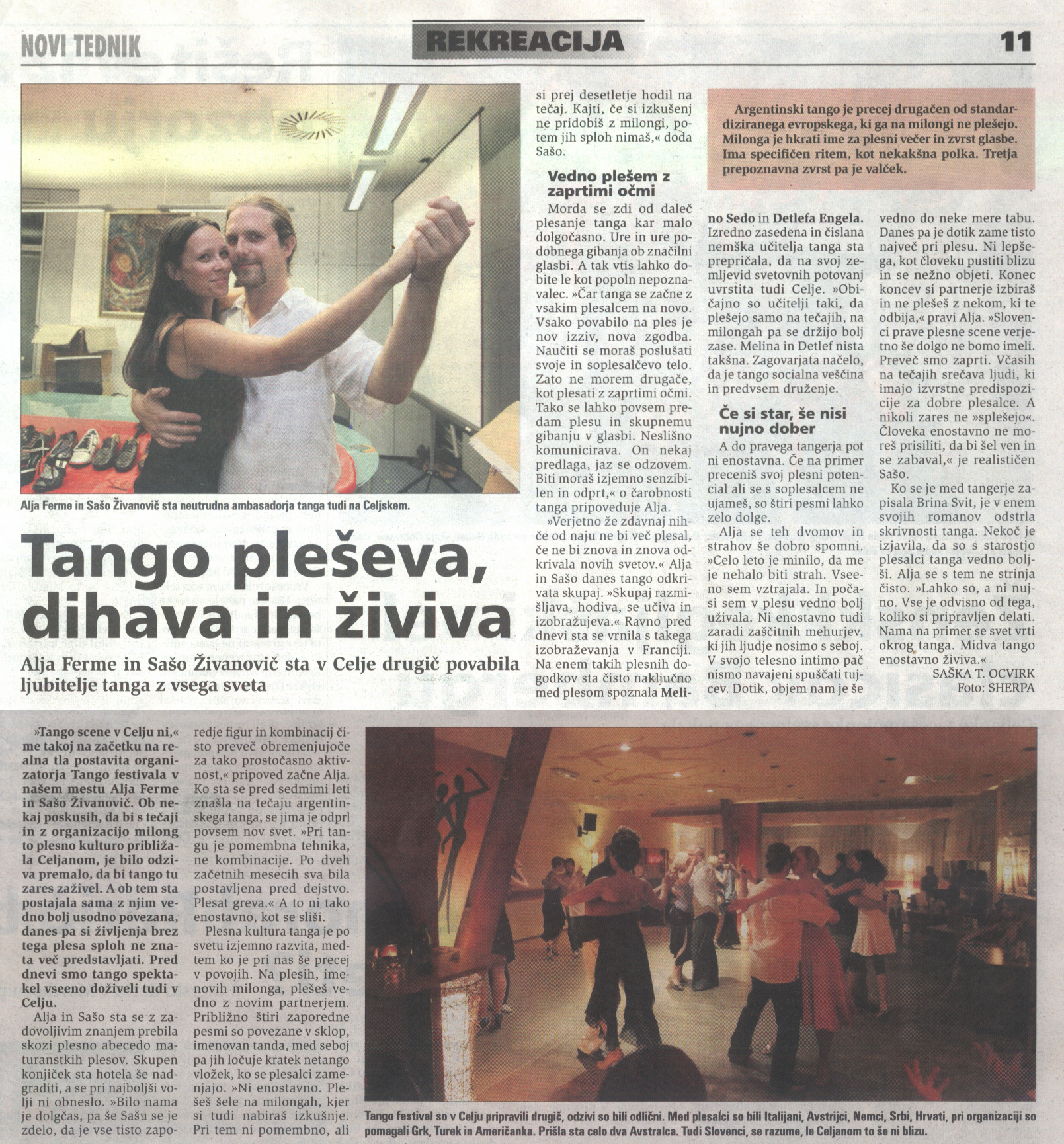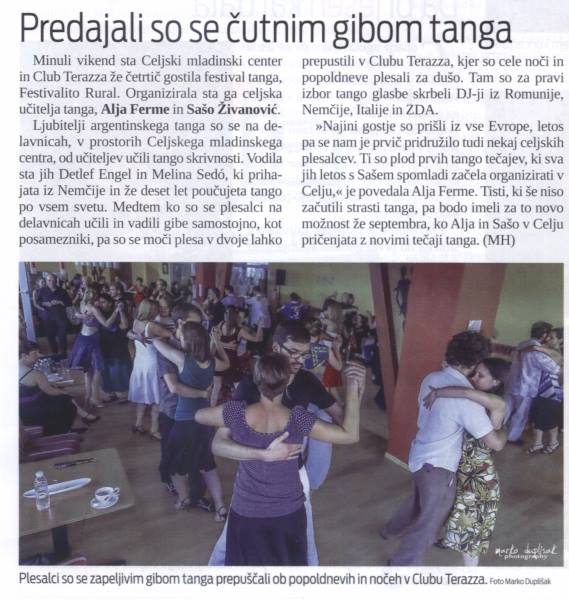 - An article about the Chat about tango, happening before a milonguita in café Beli vol, Celje, published in Celjan on June 24 2015 and on web portal Novice.si.