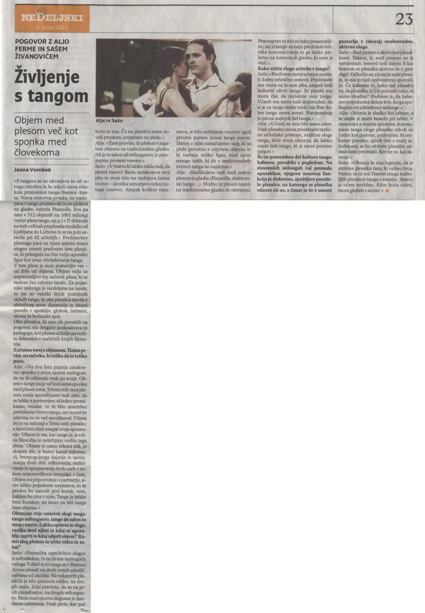 - An interview with us, by Jasna Vombek, published in Nedeljski on June 5, 2011 (in Slovene).